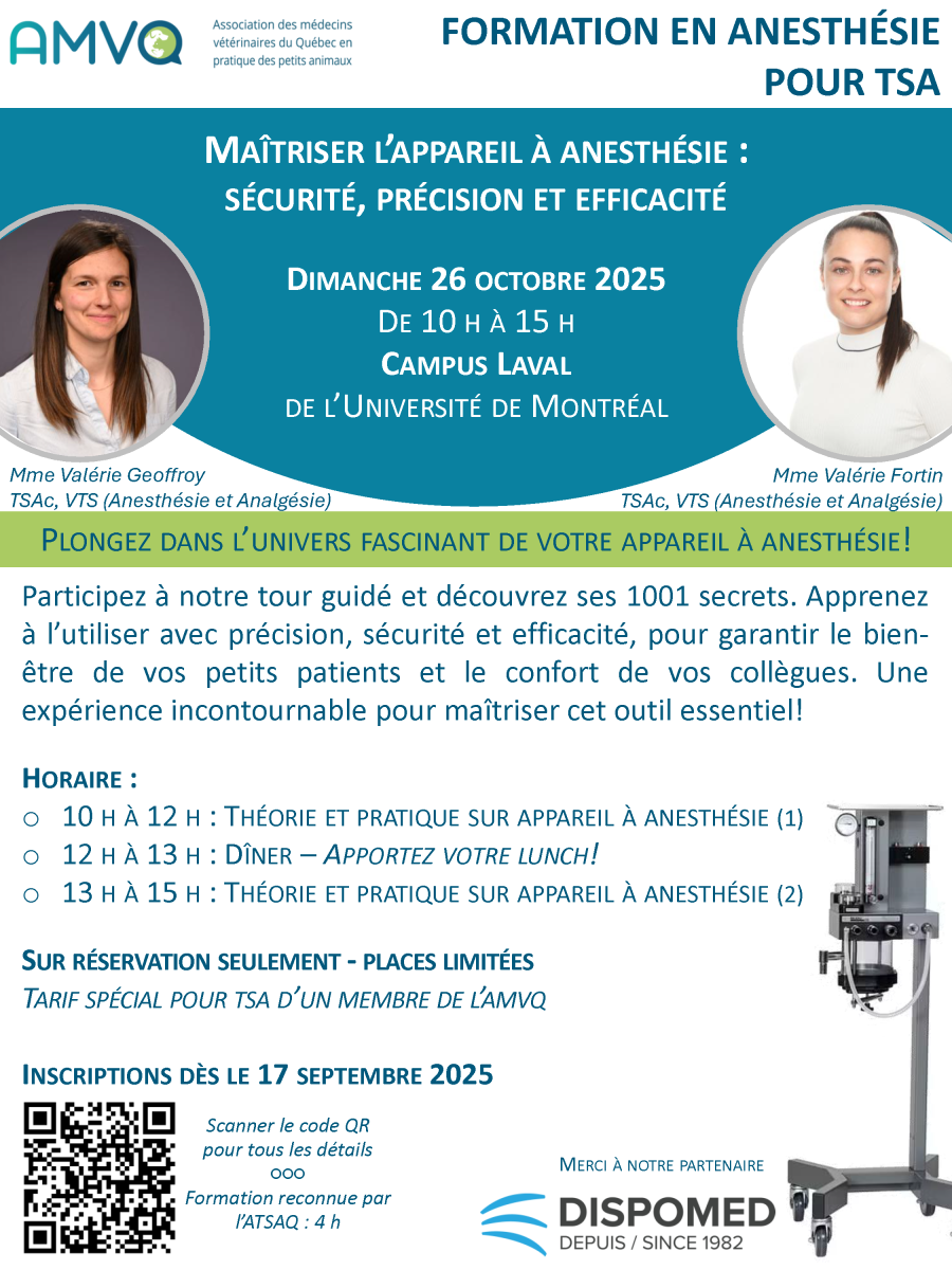 Admissibilité reconnue par l'Association des techniciens en santé animale : 4 h